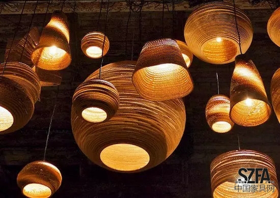 硬紙板燈具所能營(yíng)造的最獨(dú)特的感受,便是透過(guò)瓦楞紙縫隙的燈光投射到墻上時(shí),流動(dòng)而炫目的光影效果。