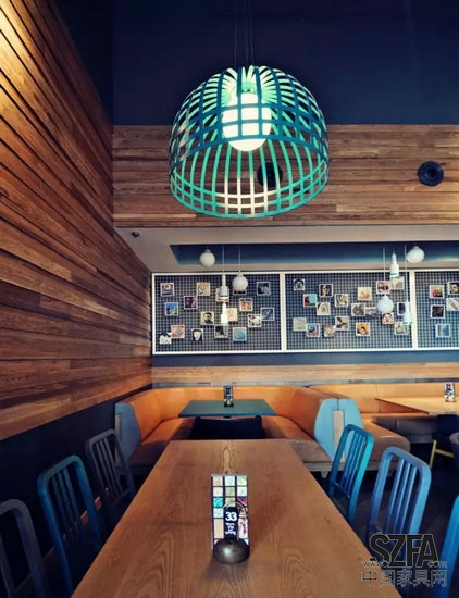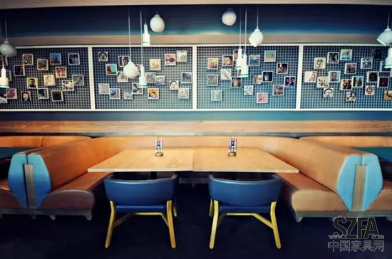 可以看到店內(nèi)設(shè)置不同類型的桌椅滿足不同顧客的要求。照片墻,藝術(shù)裝飾也是提升整個室內(nèi)的格調(diào)。
