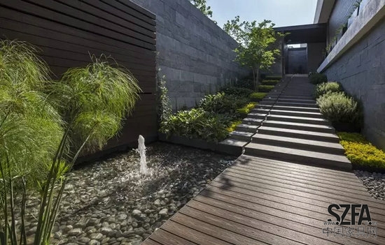 這棟別墅設(shè)計時使用到的建筑元素包括白色扁平的墻壁、木材、mirasema石材、玻璃幕墻和鋼材。為了營造出一種天然不造作的優(yōu)雅環(huán)境,設(shè)計師可謂煞費苦心。