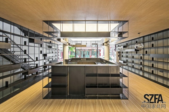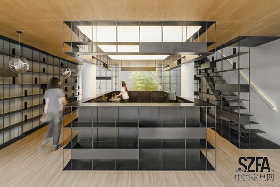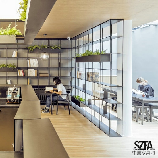 為了改變傳統(tǒng)書店粗重、刻板的形象,新的設(shè)計(jì)利用通透、輕盈的鐵制書架整合功能、交通、設(shè)備與照明,并將綠色植物置入其中,使得新的內(nèi)部空間界面更加連續(xù)開放和富于生機(jī)。