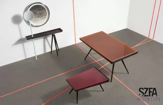 左邊的門廳桌非常獨(dú)特,高鏡子和稍微斜的桌面給這張桌子增加實(shí)用性和設(shè)計(jì)感。而右邊異形茶幾下表面帶有微小的斜度,獨(dú)特的設(shè)計(jì)為客廳帶來(lái)一些意想不到的色彩和驚喜。