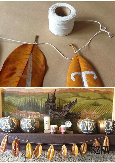 其實(shí),吊旗也可以DIY?,F(xiàn)在正是落葉繽紛之時(shí),走在路上隨處可見散落在地上的落葉。如果把它們利用起來(lái),稍加改造,就可以做出美好的感恩節(jié)橫幅。