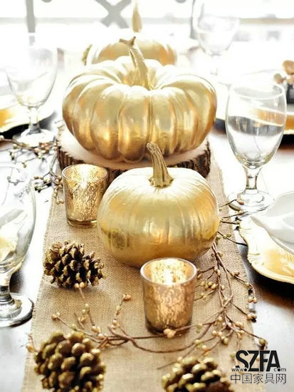 可以嘗試用白色噴漆噴涂那些裝飾南瓜,這獨(dú)一無(wú)二的飾品將給你的餐桌增添幾分恬淡優(yōu)雅。