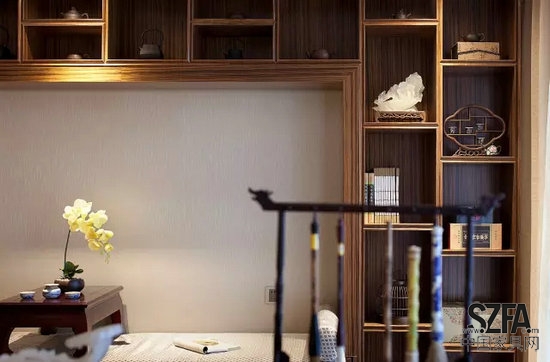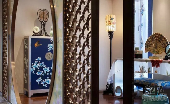 在藝術(shù)品的陳列上,則以手工刺繡、絹絲手繪為主,輔以精致飾品與玉飾點綴,凸顯空間的品質(zhì)感。