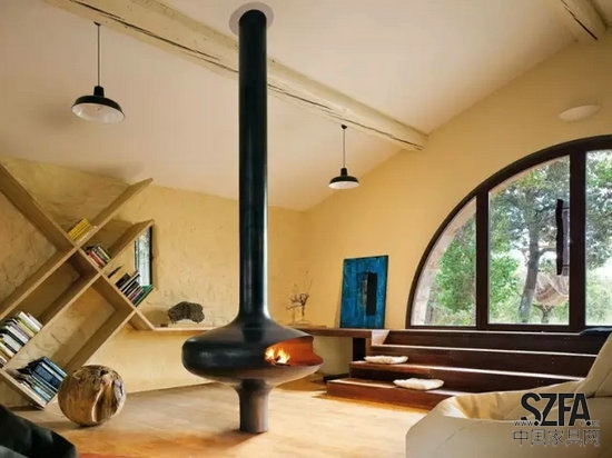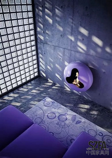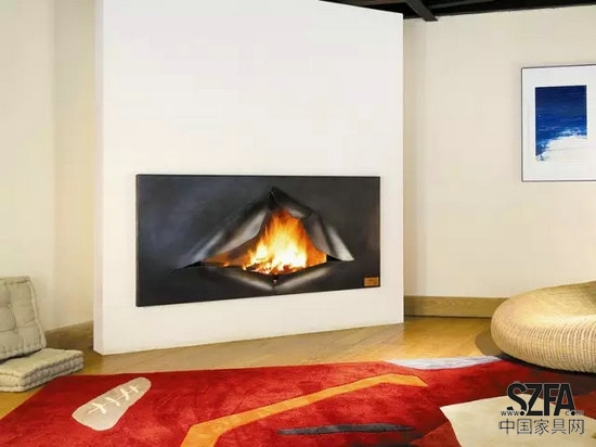創(chuàng)意的地方在于圓形的地毯中央設(shè)置了一個(gè)火爐。隨著科技的發(fā)展,筆記本、手機(jī)等產(chǎn)品讓人們住在同一個(gè)屋檐下,也各自有自己的娛樂(lè)世界。而Stephanie Langard認(rèn)為火可以將家人朋友匯聚在一起,更多地陪伴彼此。