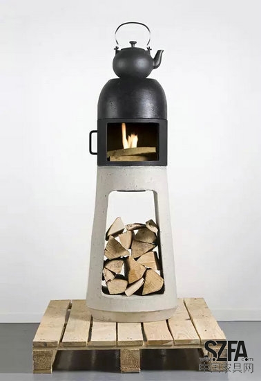 火爐并不是只有別墅才可以配備的器物。年輕的法國(guó)設(shè)計(jì)師Yanes Wühl 便設(shè)計(jì)了一款名為Wood Stove的火爐,十分地接地氣。Yanes Wühl將其描述為一個(gè)雕塑、一個(gè)不朽之碑,一旦放定了位置就不會(huì)輕易移動(dòng)。混凝土材質(zhì)的底座可以存儲(chǔ)原木材,金屬的爐子關(guān)上可以在爐頂加熱水,開敞狀態(tài)便是一個(gè)壁爐,可以營(yíng)造輕松舒適的空間氛圍。