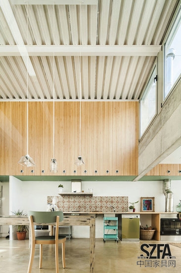 為了滿足這些要求,SAU Taller de Arquitectura事務所提出了一個明確的方案:將服務和貯藏空間移至無門窗、缺乏采光的墻邊,留出一個明確的核心空間,將周圍的碎空間整合在一起。由此,我們輕松地將臨街和朝向庭院的墻面解放出來。而這些墻面朝南或朝北的朝向,自然地變成了整個房子采光面和通風過濾器。這樣的改變還能使房子擁有自由和靈活的布局,根據(jù)住戶需要使用輕質板分隔。為了實現(xiàn)這個目標,我們會在混凝土墻中預留出隱蔽的固定點用以在日后搭建簡單的木質結構。