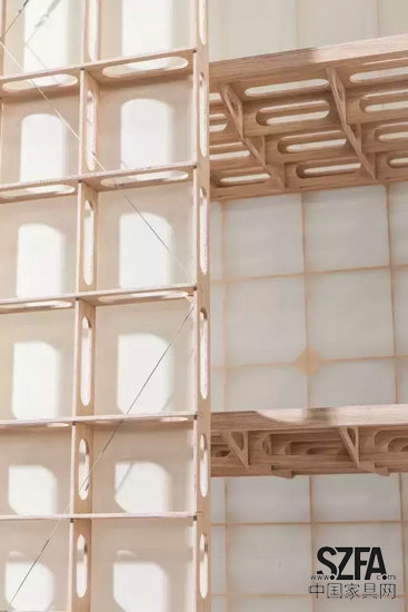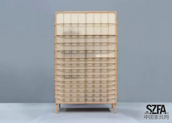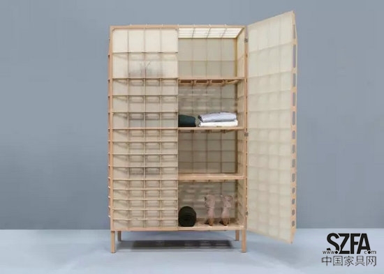 核心提示:這是由荷蘭設(shè)計(jì)師 Mieke Meijer 設(shè)計(jì)的衣柜,他從 20 世紀(jì)早期飛機(jī)機(jī)翼中獲得的靈感。柜子的表面像是有無數(shù)小方格,其實(shí)是用帶孔的橡木板搭建的,中間串上鋼絲繩固定,從中間打開后就有木質(zhì)機(jī)翼的輕盈感。