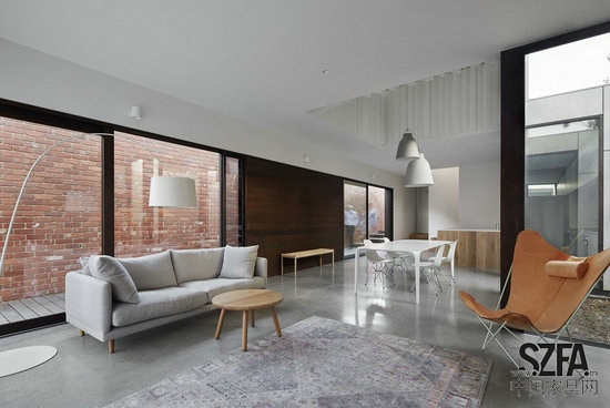業(yè)主的需求是在內(nèi)城打造一座既現(xiàn)代又無(wú)需過多維護(hù)的開放式住宅。JCB的設(shè)計(jì)在滿足業(yè)主要求的同時(shí)還提供了多變的光線、體量和空間形式來(lái)提升住戶的日常居住體驗(yàn)。這一項(xiàng)目探索公共與私人空間的關(guān)系,為當(dāng)?shù)厮茉炝诵碌淖≌问?。建筑的材料使用回收的紅磚、水泥板和木料。立面的設(shè)計(jì)既引人注目又與街道環(huán)境產(chǎn)生良好的互動(dòng)。