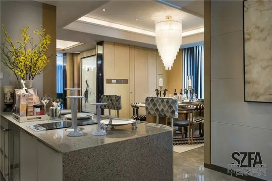 餐廳的設計以硬朗輕盈的線條感凸顯出經典與現代的交織感,黑色編制皮革給人成熟穩(wěn)重的味道。
