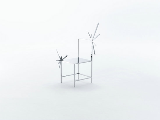 為了傳遞漫畫抽象化的特性,椅子的設計沒有加入任何色彩或材質(zhì)的信息,而是采用了鏡面。鏡子中出現(xiàn)了另一個“真實”的世界,就像漫畫一樣。