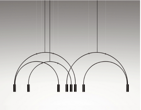 西班牙品牌Estiluz,用纖細的拱形框架,光源兩端設計了不同型號的半圓,可供單獨使用或者拼接使用。