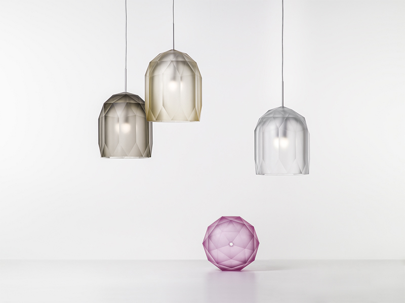 Polygon expresses light, glass and the glass-cutter’s art in perfect harmony.Combining the traditional shape of a hand-blown glass lamp shade with the polygonal network often used in 3D modeling programs, Polygon creates a new and unusual décor with two distinct looks. In the daytime, light gently refracts from its matte surface, while at night the interior light source reveals the elegance of the design in full detail.