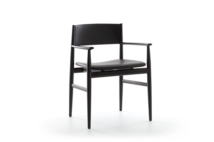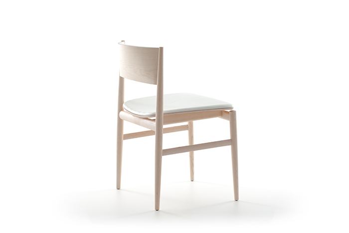 Neve, a seat with rigorous yet soft lines, reinterprets the classic wooden chair in a contemporary vein. The support structure is characterised by format of distinct lines of various thicknesses, which give it a pleasant aerodynamicity, and the roundness of the spindle legs and the slim curvature of the back and suspended seat make soften its figure.Available with and without arms in black stained ash, red stained ash, white stained ash and natural ash, that accentuates its decoration and at the same time ensures its elegance, giving it a vintage 1950s appearance.