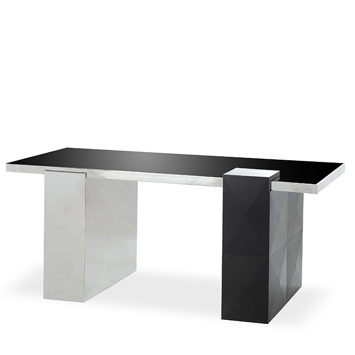 Featured metal finishes include rose gold, nickel, bronze, brass and stainless steel with smoked glass, wood and coloured lacquers to create a high fashion point of view which pervades the whole collection. The Vinci chair, with its rose gold metal frame and wood arms, exudes a sense of refined luxury, balancing strong, clean lines with organic textures.