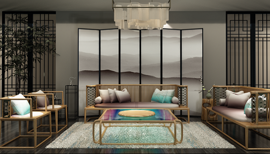 又比如山水畫(huà)與屏風(fēng)結(jié)合,“山不在高,有仙則名。水不在深,有龍則靈”的意境立顯。