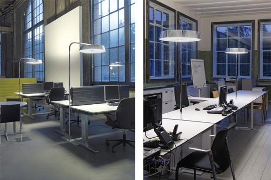 The ARBA family of lamps is equipped with high-quality (DALI) electronics und energy-saving fluorescent lights of constant flux, with excellent color projection and long operating life. The standing and table lamps have a switch in the cable while the hanging lamp may have a dimmer or an off/off switch as the customer requires when installing. The large hanging lamp is 600 mm in diameter and has four powerful 42 W luminaires and, with their powerful light, can be used in offices, public buildings and places with high ceilings.These designed by Matteo Thun & Antonio Rodriguez.