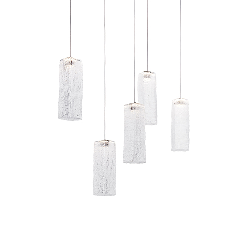 這款吊燈的長(zhǎng)度不盡相同,優(yōu)雅地懸浮于空中,營(yíng)造出一種光影交錯(cuò)的美妙場(chǎng)景。這款作品雕塑般的外形在白天顯得尤為引人注目,到了晚上則又會(huì)散發(fā)出別樣的光影。