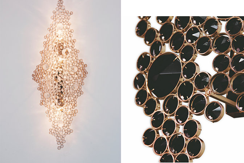 Eternity吊燈可以將任何空間轉(zhuǎn)變成如同奢侈宮殿般的奢華氛圍。手工挑選的水晶顆粒有無色透明和黑色兩種可選,被鍍金或者鍍銀的黃銅包裹,使它與傳統(tǒng)的水晶吊燈相區(qū)別。