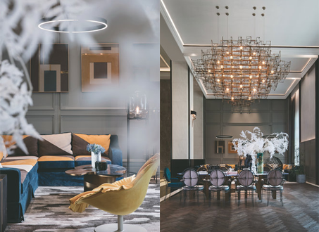 設計師堅信,屈就于制式的復制內容無法振奮人心。明快的色彩、自然的線條和古典的曲線,通過視覺設計與材質的組合,與家具一起變成立體的空間布置,形成全新設計,營造時尚氛圍。