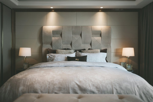 推開(kāi)主臥的房門(mén),沉穩(wěn)冷靜的米色調(diào)一如主人內(nèi)斂而高雅的氣質(zhì),散發(fā)出獨(dú)特的魅力,風(fēng)情萬(wàn)種就在這一點(diǎn)一滴中彌漫。主臥設(shè)計(jì)摩登而又別致,與戶外空間自然銜接,一氣呵成。意大利品牌家居Fendi的Astoria Bed占據(jù)視線,超大尺寸的高背設(shè)計(jì)讓坐靠的感覺(jué)無(wú)比舒適,創(chuàng)新的鏈條式結(jié)構(gòu)極度考驗(yàn)做工,絲毫不馬虎的精致做工和絕佳材質(zhì)完美結(jié)合,將奢而有品玩到了極致境界。每一寸空間的流轉(zhuǎn),每一件家具的停泊,每一方色彩的綻放,都勾勒出臥室空間獨(dú)有的場(chǎng)域氣質(zhì)。