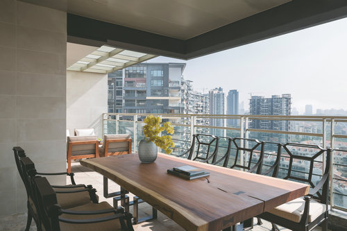 餐廳延續(xù)客廳的細(xì)膩精巧,烤漆圓餐桌體現(xiàn)中國(guó)人的生活習(xí)慣,搭配意式皮革餐椅,溫馨的就餐氛圍連著美食一起輕輕浸入五臟六腑,在唇齒間留香。自餐廳場(chǎng)域望向客廳,開(kāi)放式空間在雅致花卉、別致的飾品和時(shí)尚家具的映襯之下,可媲美藝術(shù)畫(huà)作,雖靜止卻難掩靈動(dòng)、雅奢氣度。