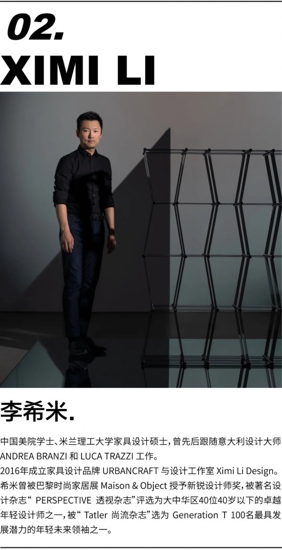 L:今年深圳時(shí)尚家居設(shè)計(jì)周一共有 14 個(gè)展館,其中 6 個(gè)是設(shè)計(jì)導(dǎo)向的主題館。當(dāng)深圳時(shí)尚家居設(shè)計(jì)周向我發(fā)出 11 號館的策展邀請時(shí),雙方的想法十分契合。我在意大利學(xué)習(xí)工作多年,2016年開始經(jīng)營自己的家具品牌 URBANCRAFT,并以設(shè)計(jì)工作室 Ximi Li Design 開啟了與中國原創(chuàng)家具品牌的合作。從海外到國內(nèi),有幸經(jīng)歷了不同的審美與文化體系,同時(shí)也經(jīng)歷了兩國行業(yè)的多樣性。中國的現(xiàn)代家具設(shè)計(jì)行業(yè)才剛剛開始,高速演化的社會進(jìn)程中,市場也隨之快速變化。展覽方身處行業(yè)里,同樣深深理解行業(yè)處于過渡期的痛點(diǎn),從他們的角度也更能理解許多制造商、品牌方對未來的考量。因此,我們希望所策劃的設(shè)計(jì)坐標(biāo)概念展,能在某種意義上有帶動、引領(lǐng)的作用,希望這是一個(gè)有國際視野的展覽,可以被國內(nèi)摸索中的品牌所借鑒。