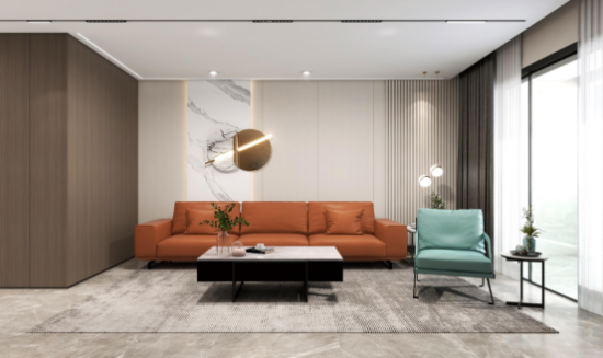 空間雖小,其韻悠長(zhǎng)。色彩、材質(zhì)延續(xù)極簡(jiǎn)風(fēng),營(yíng)造出素雅簡(jiǎn)靜的空間氛圍。內(nèi)設(shè)CBD家居·黑金 | HG038沙發(fā),暖橘色像一抹日出,鮮亮的色彩驅(qū)散緊張煩悶;寬厚扶手、飽滿座靠包,簡(jiǎn)單一字型排布,別具秩序美感。