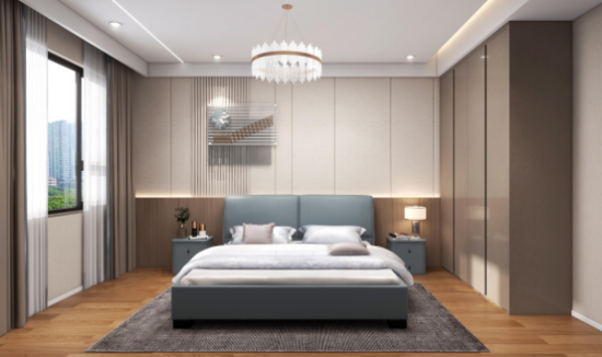 胡桃木色地板運(yùn)用于所有臥室空間,打造典雅高貴的視覺觀感。長(zhǎng)輩房軟裝陳設(shè)不宜復(fù)雜,CBD家居·云豹 | Y103軟床,綜合美感與實(shí)用主義,不顯張揚(yáng)的青灰色內(nèi)斂沉靜,舒緩睡眠氛圍,獨(dú)立雙靠包寬厚飽滿,舒適承托長(zhǎng)輩腰脊,更顯貼心。