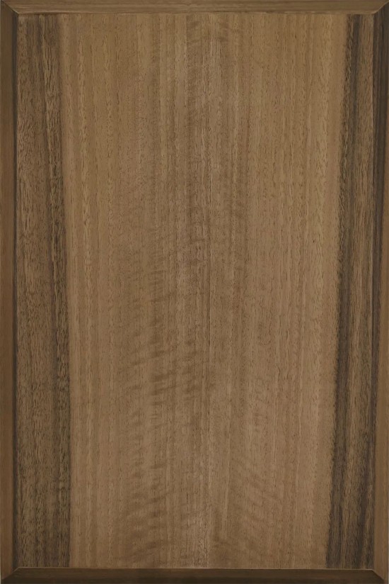 歐洲胡桃木木紋深淺適中,選用流平性較好的WAD9502S威尼斯水性雙組份清底漆濕噴,讓板材充分潤(rùn)濕。漆膜干透后自然下陷,顯現(xiàn)平整光滑的半開放效果。