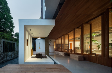 “木材其實是空間中的特殊界面,新老結(jié)構(gòu)的分界、室內(nèi)室外的分界、人行走和停留的分界,都可以與它有關(guān)。”對于木材的定位及運用,金鑫有著自己的理解,“結(jié)合美國櫻桃木自身的特性,它用于結(jié)構(gòu)構(gòu)件和裝飾構(gòu)件都很出色。自然的紋理、自帶的木頭香氣,都會給人一種溫暖的感覺。”